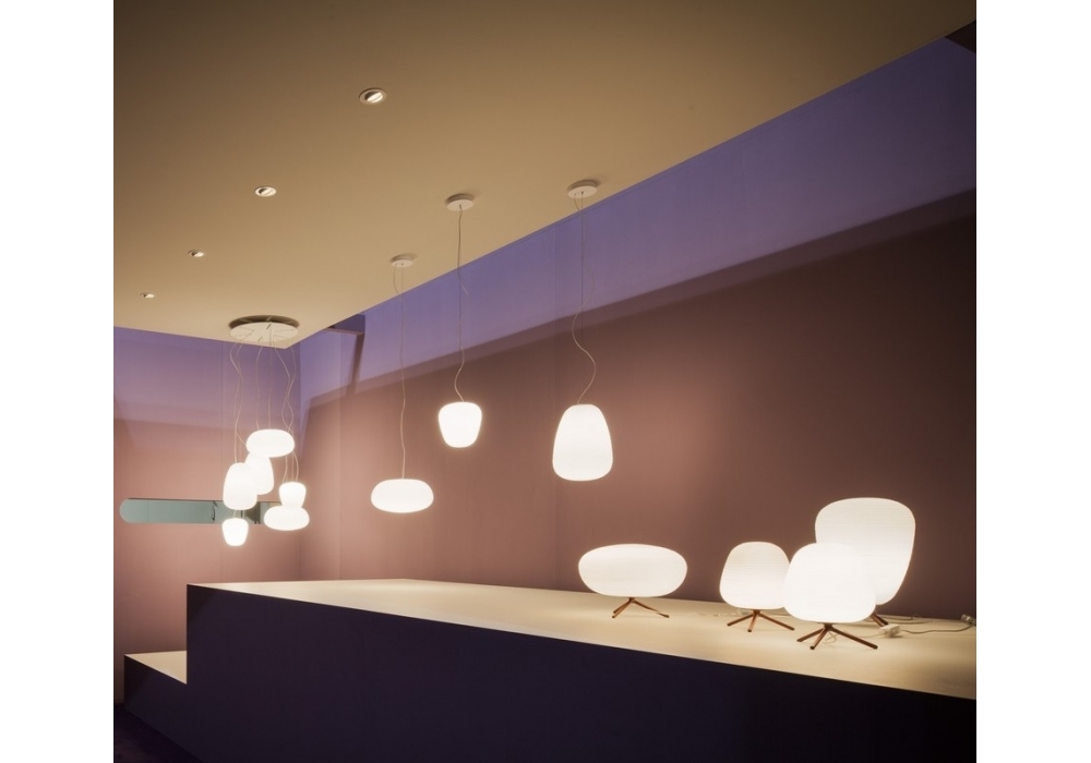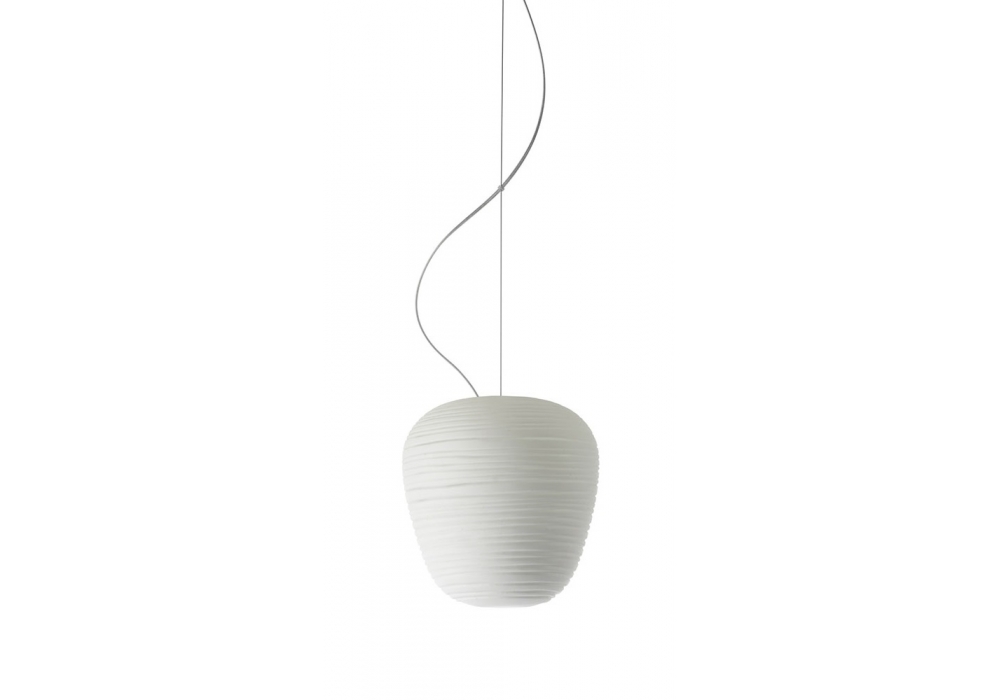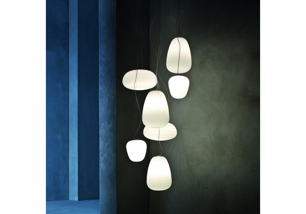 Rituals 3 firmata da Ludovica + Roberto Palomba per Foscarini è una lampada a sospensione con struttura portante in metallo verniciato. Il diffusore è in vetro soffiato con superfice arricchita da incisioni circolari. La sorgente luminosa è con innesto E27 di tipo LED o alogena.