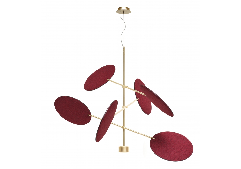 Diva firmata da Sebastiano Tosi per Mogg è una lampada a sospensione realizzata con struttura in metallo con bracci porta dischi orientabili. Dischi orientabili con proprietà fonoassorbenti rivestiti in tessuto. Disponibile in diverse finiture e dimensioni.