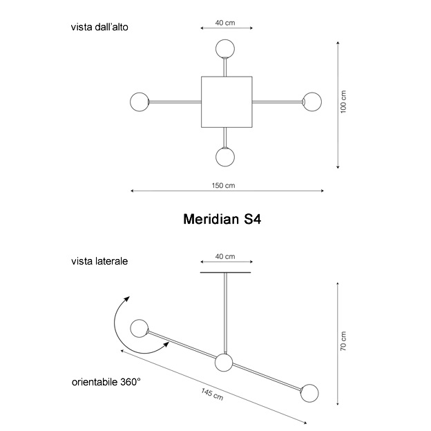 Meridian firmata da Riflessi è una lampada a sospensione con attacco lampade orientabile a 360 gradi e inclinabile a 90 gradi.