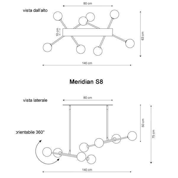 | Sorgente luminosa | S4_ 4 x E14, LED; S8_ 8 x E14, LED. |