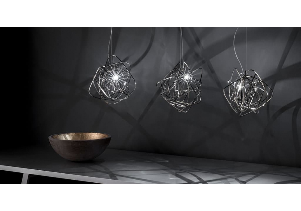 Doodle Small firmata da Simone Micheli per Terzani è una lampada a sospensione interamente strutturata in metallo intrecciato. La sorgente luminosa adottata è di tipo LED in versione dimmerabile o non dimmerabile. Doodle Small è disponibile in differenti finiture.