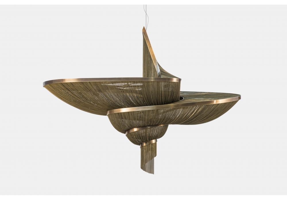 Epoque firmato da Stefano Papi & Saviz Yaghmai per Terzani è un lampadario con struttura portante in metallo e pendenti a maglia in ottone placcato. La sorgente luminosa adottata è di tipo LED integrata dimmerabile in differenti gradazioni di luce. Epoque è disponibile in vari modelli e finiture.