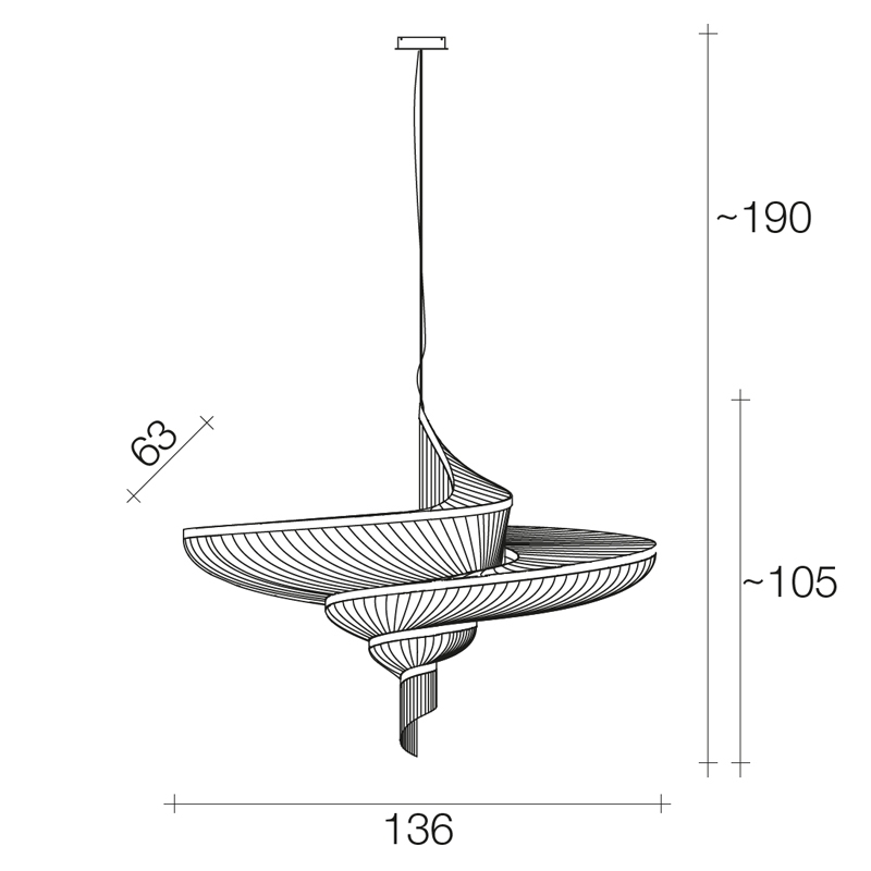 | Diffusore | Ø 35 x H 200 cm (Vertical); 136 x 63 x H 105 (Chandelier). |