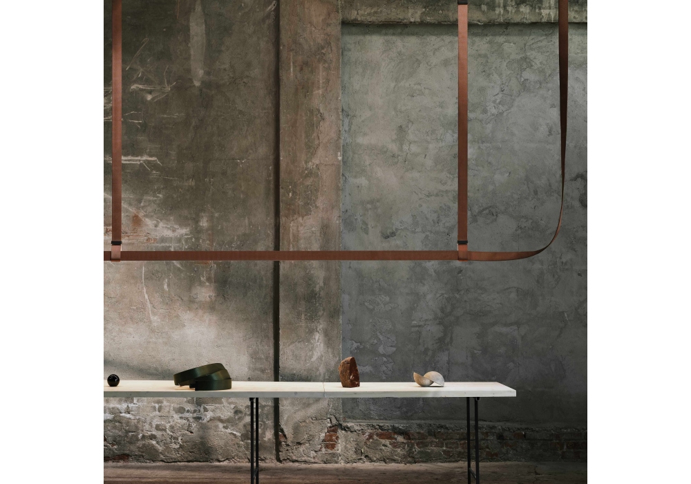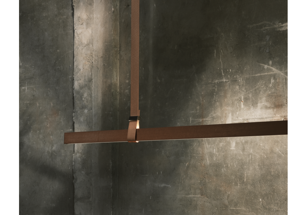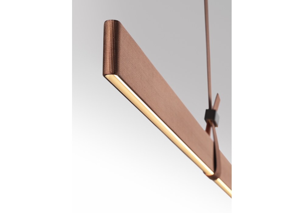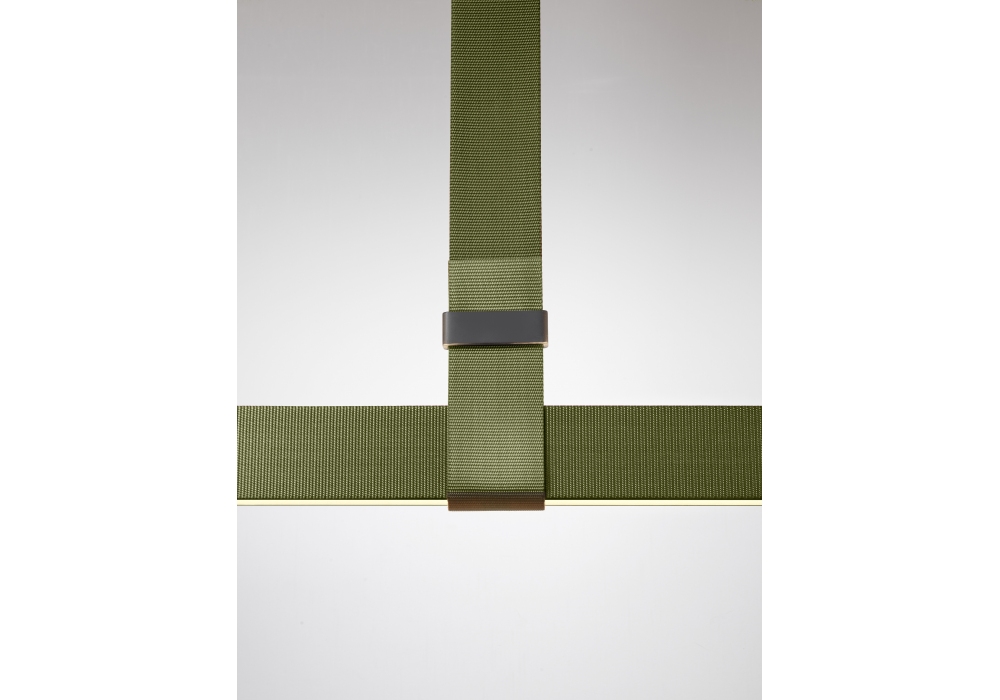 Belt Fabric firmata da Ronan & Erwan Bouroullec per Flos è una lampada a sospensione con struttura in alluminio estruso rivestito in tessuto e diffusore in policarbonato opale. Interruttore integrato (regolabile da remoto). Fonte luminosa LED inclusa.
