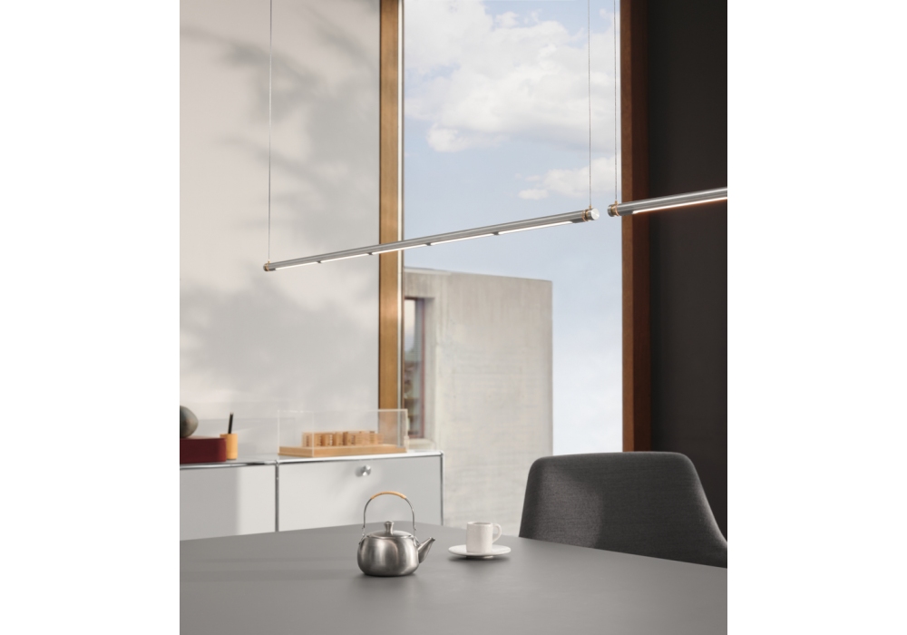 Oneline firmata da Kasper Friis Kjeldgaard per Fritz Hansen è una lampada a sospensione realizzata in acciaio inossidabile, ottone spazzolato o PVD nero, ognuna ha dettagli in ottone lucido e cavi di sospensione color argento. Dotata di tecnologia LED a lunga durata ed è dimmerabile.