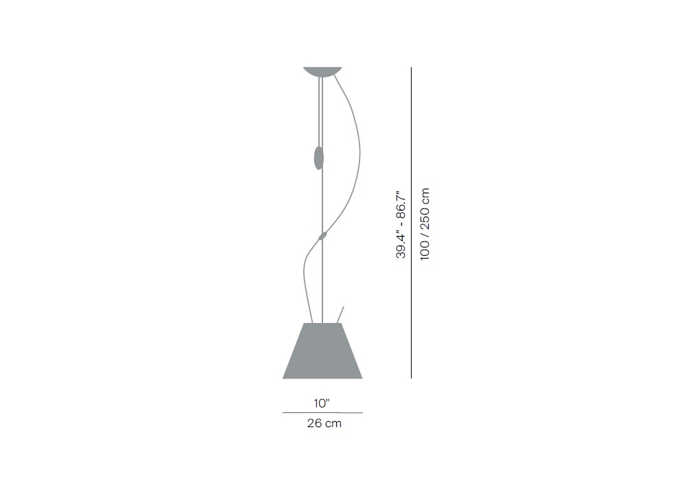 Costanzina firmata da Paolo Rizzatto per Luceplan è una lampada a sospensione con contrappeso bianco e paralume intercambiabile in policarbonato serigrafato in diverse finiture. Attarverso il saliscendi è possibile regolare l'altezza della lampada.