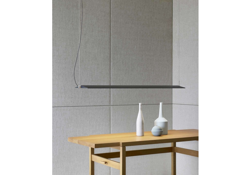 Fienile firmata da Daniel Rybakken per Luceplan è una lampada a sospensione con struttura in alluminio bianco o grigio scuro e schermo in PMMA.