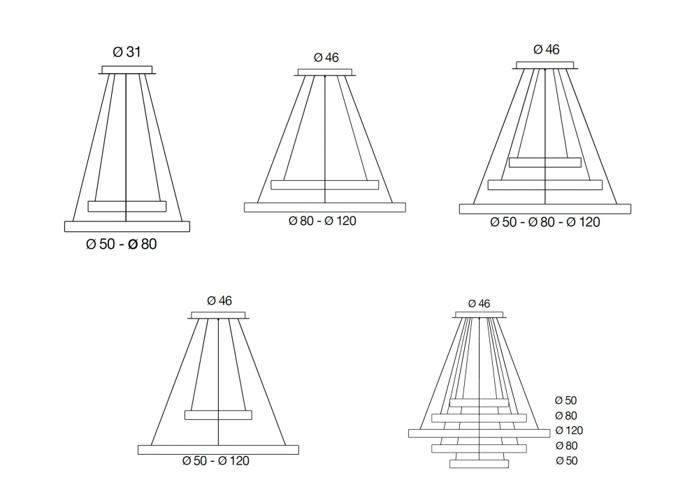 | Diffusore | Ø 50 H 6,5 cm; Ø 80 H 6,5 cm; Ø 120 H 6,5 cm. |
