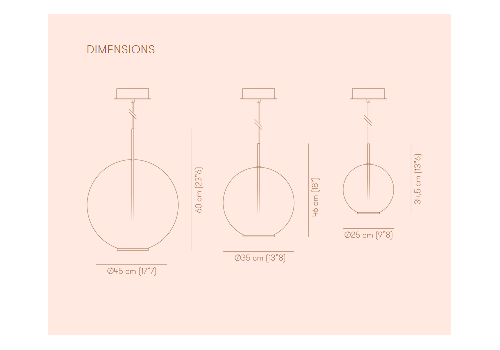 | Dimensioni | Small: Ø 25 x H 34,5 cm; Medium: Ø 35 x H 46 cm; Large: Ø45 x H 60 cm. |