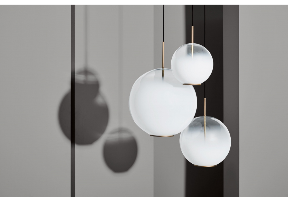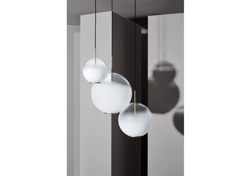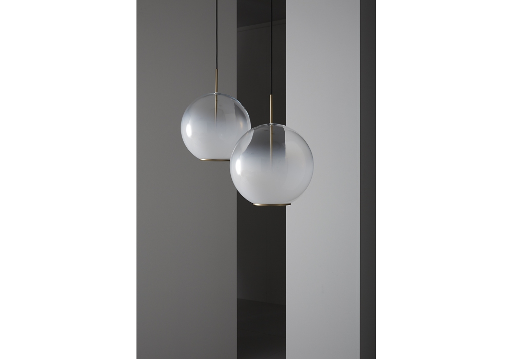Misty firmata da Massimo Tonetto per Venicem è una lampada a sospensione a luce diffusa. Struttura in ottone brunito naturale e diffusore in vetro soffiato sfumato bianco. Disponile in varie dimensioni. Kit dimmer venduto separatamente.