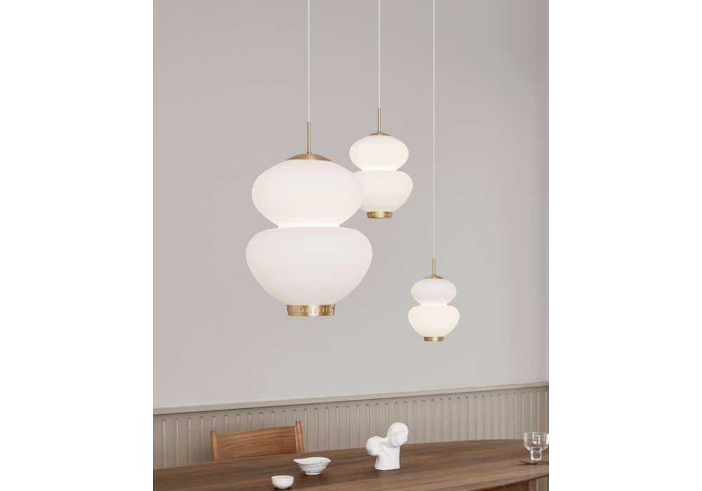 Peanut firmata da Bent Karlby per Lyfa è una lampada a sospensione realizzata in vetro opalino a 3 strati e soffiato a bocca, completato da un pezzo superiore e inferiore in ottone massiccio. E' disponibile in tre diverse dimensioni ed è progettata per essere appesa da sola o in grappoli.