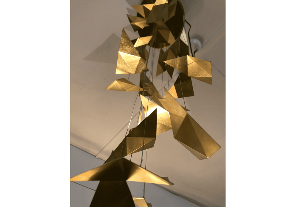 Etourneaux S firmata da Ombre Portée è una lampada a sospensione realizzata in ottone spazzolato e cerato. Box driver in ottone.