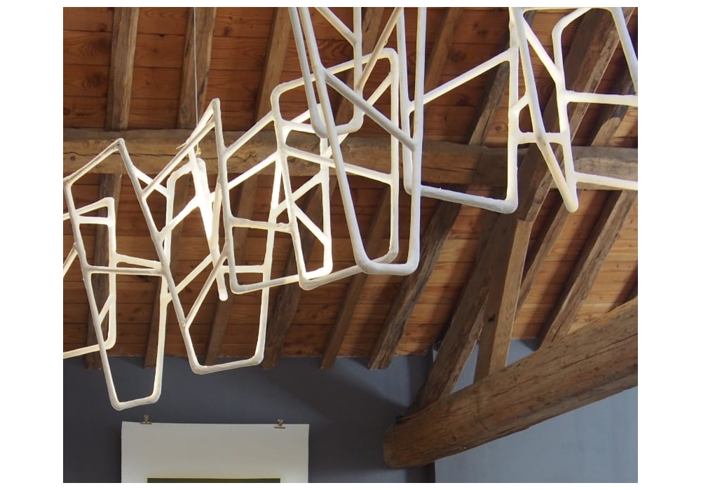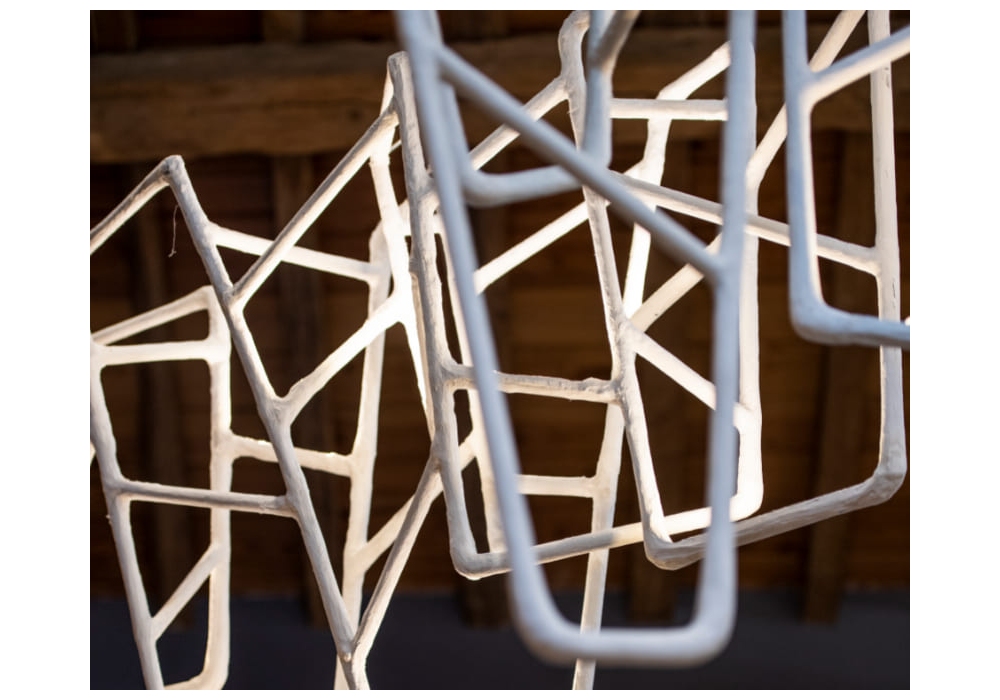 Léopoldine firmata da Ombre Portée è una lampada a sospensione realizzata in intonaco patinato. Box driver in acciaio verniciato.