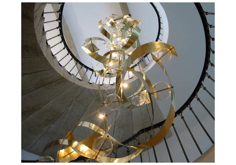 Mœbius firmata da Ombre Portée è una lampada a sospensione realizzata in ottone spazzolato e cerato. Box driver in ottone.