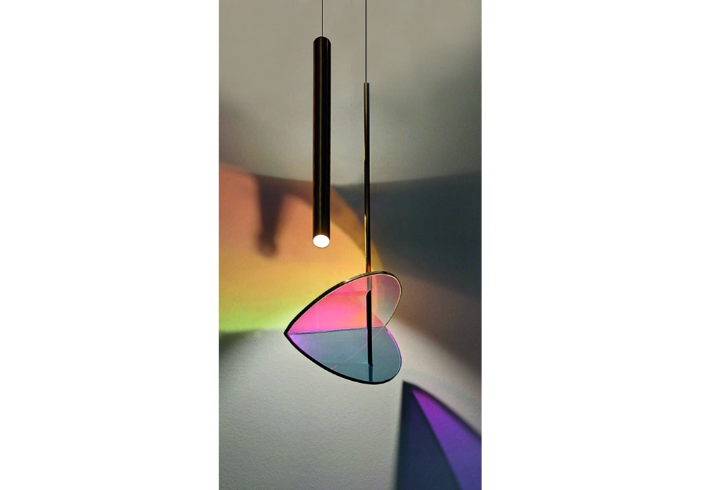 Polaris firmata da Ombre Portée è una lampada a sospensione realizzata in ottone spazzolato e Plexiglass