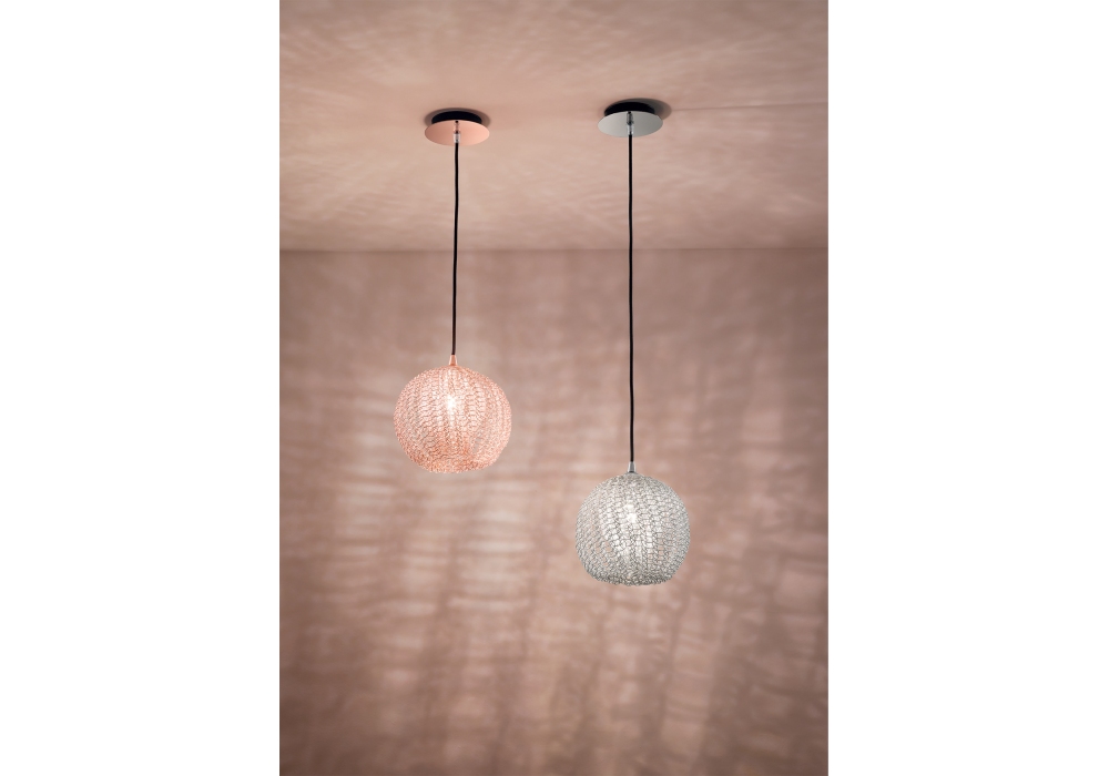 Luce Sphere firmata da Domenico Rinaldi per Fisionarte è una lampada a sospensione con struttura in metallo in differenti finiture. Il corpo lampada è di forma sferica in maglia metallica intrecciata ed adotta una sorgente luminosa con innesto G9 di tipo LED o alogena. Luce Sphere è disponibile in differenti finiture.