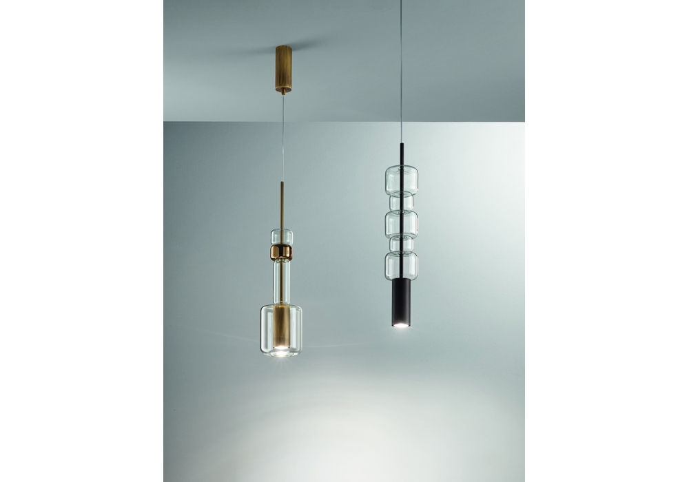Uno + firmata e prodotta da Fisionarte Studio è una lampada a sospensione modulare con struttura in metallo tubolare verniciato o galvanizzato in diverse finiture. Il corpo lampada è adornato da moduli in vetro di forma cilindrica verniciati in diversi colori. La sorgente luminosa adottata è con innesto GU10 di tipo LED. Uno + è disponibile in differenti modelli.