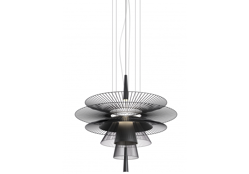Gravity firmata da Kateryna Sokolova per Forestier è una lampada a sospensione realizzata da 3 strutture circolari in metallo, e da una corda in bamboo. Disponibile in differenti modelli e finiture.