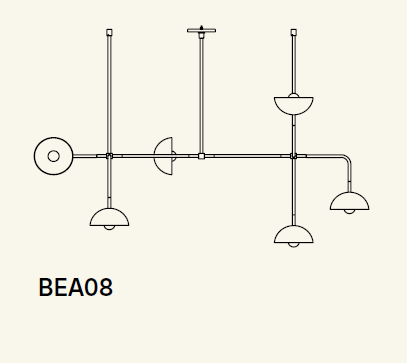 Beaubien 08 firmata e prodotta da Lambert&Fils è una lampada a sospensione in acciaio verniciato a polvere e corpo in alluminio o ottone diffusori in vetro color latte e cordoncino in vinile. Disponibile in diverse finiture e dimensioni.