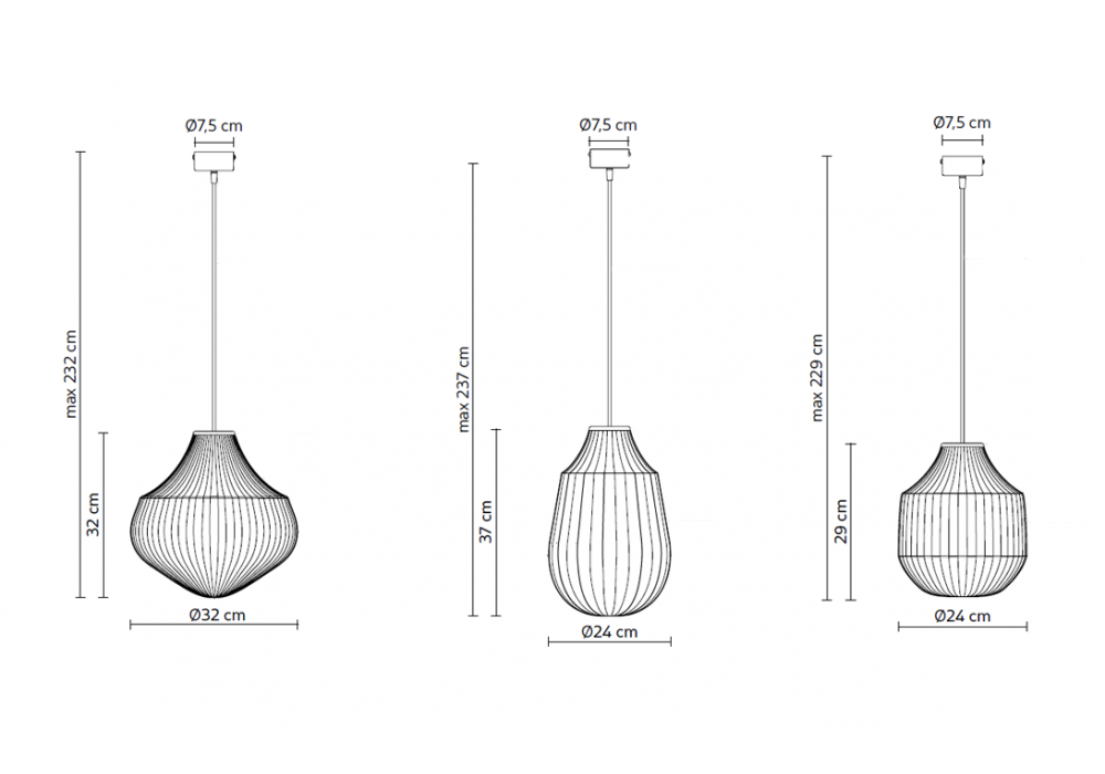 | Dimensioni | • Ø 24 x H 37 cm; • Ø 24 x H 29 cm; • Ø 32 x H 32 cm |