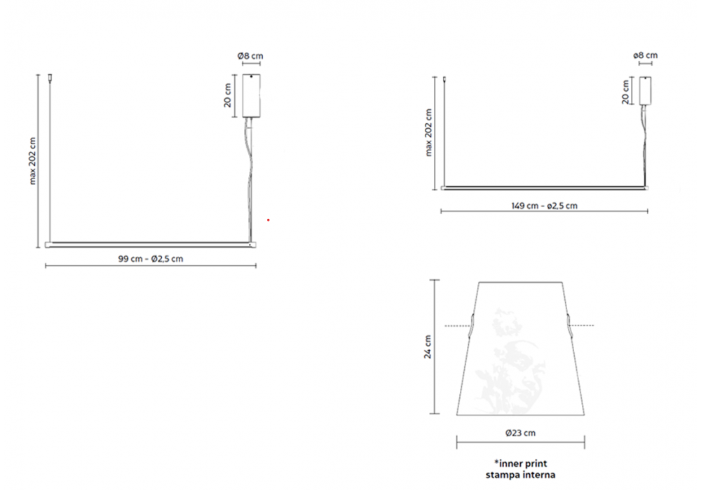 Cupido firmata da Matteo Ugolini per Karman è una lampada a sospensione con struttura in allumino nero opaco e diffusore in policarbonato opaco. Disponibile in differenti dimensioni.