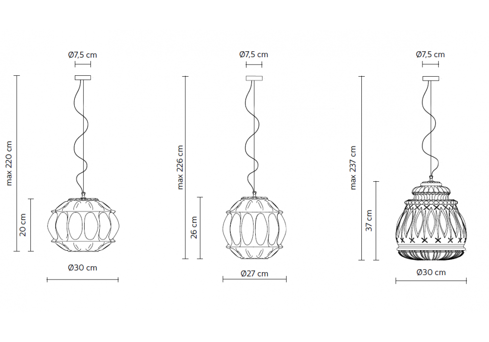 | Dimensioni | • Ø 30 x H 20 cm; • Ø 27 x H 26 cm; • Ø 30 x H 37 cm |