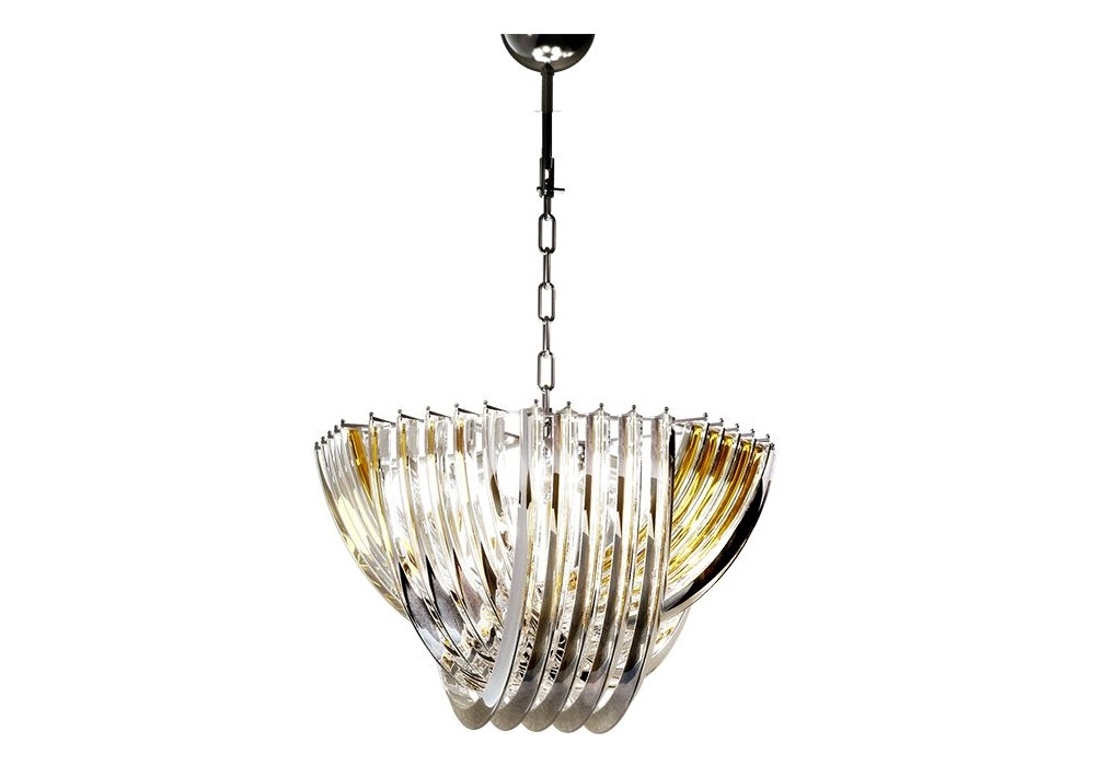 Triedri 964.50 firmata e prodotta da Venini è una lampada a sospensione con diffusore composto da elementi in vetro soffiati e lavorati a mano, con finitura cristallo/giallo ambra.