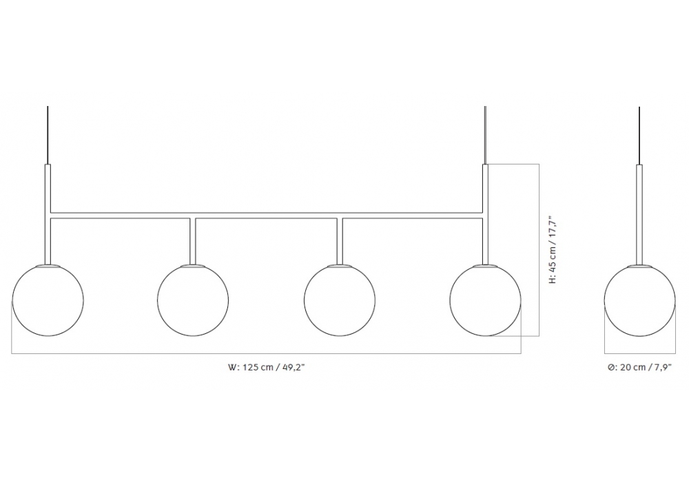 TR Frame firmata da Tim Rundle per Audo Copenhagen è una lampada a sospensione realizzata in acciaio verniciato a polvere nero, lampadine in vetro nella finitura bianco opaco.