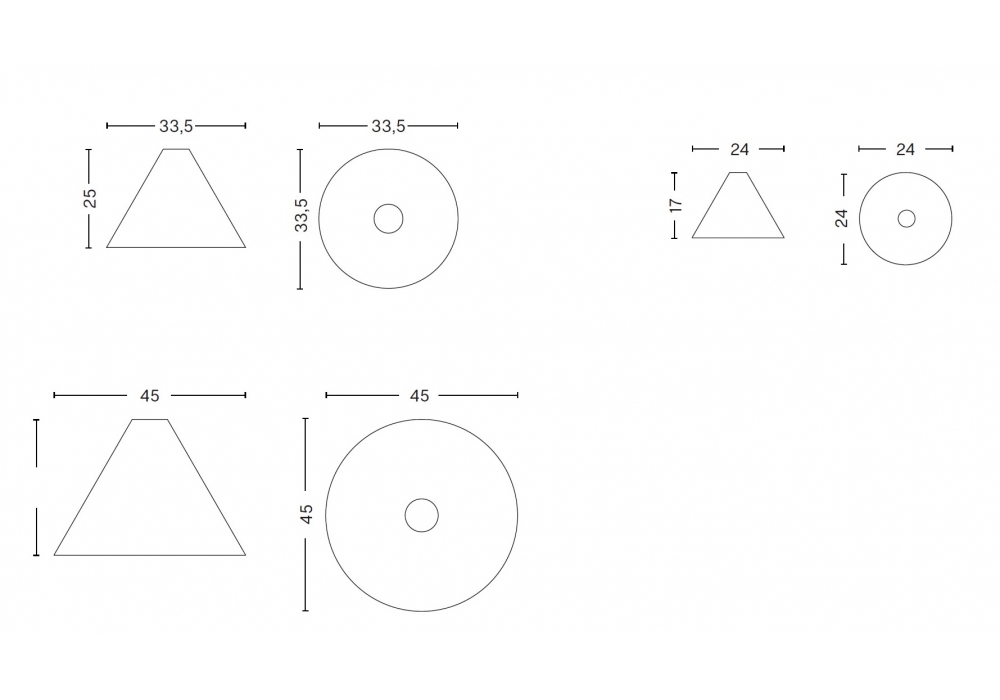 | Dimensioni | Ø 24 x H 17 cm; Ø 33.5 x H 25 cm; Ø 45 x H 35 cm. |
