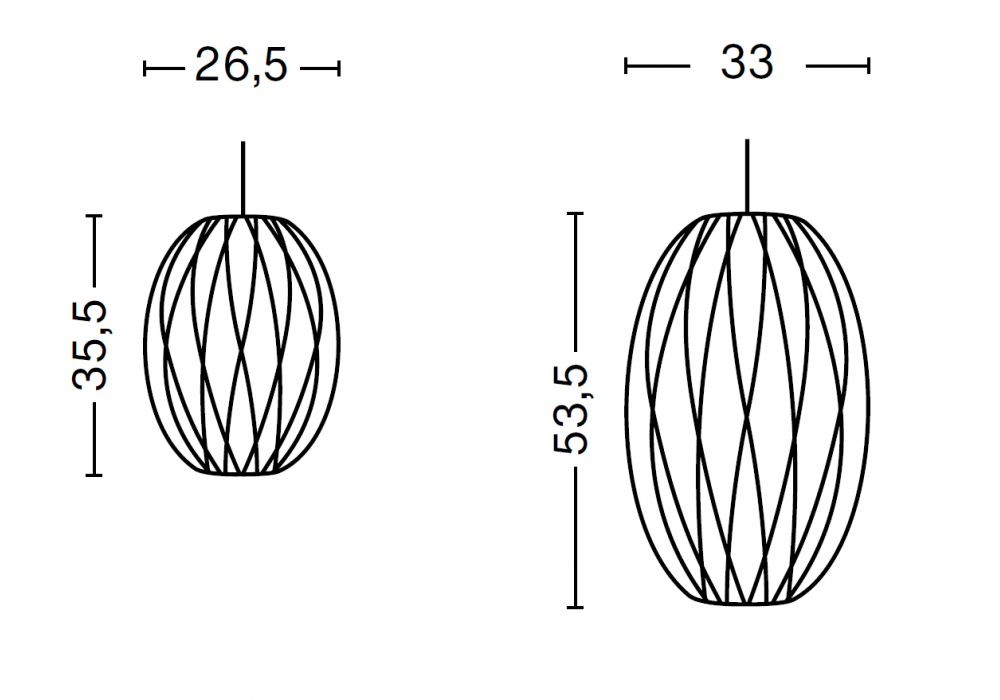 | Dimensioni | Ø 26.5 x H 35.5 cm; § 33 x H 53.5 cm. |