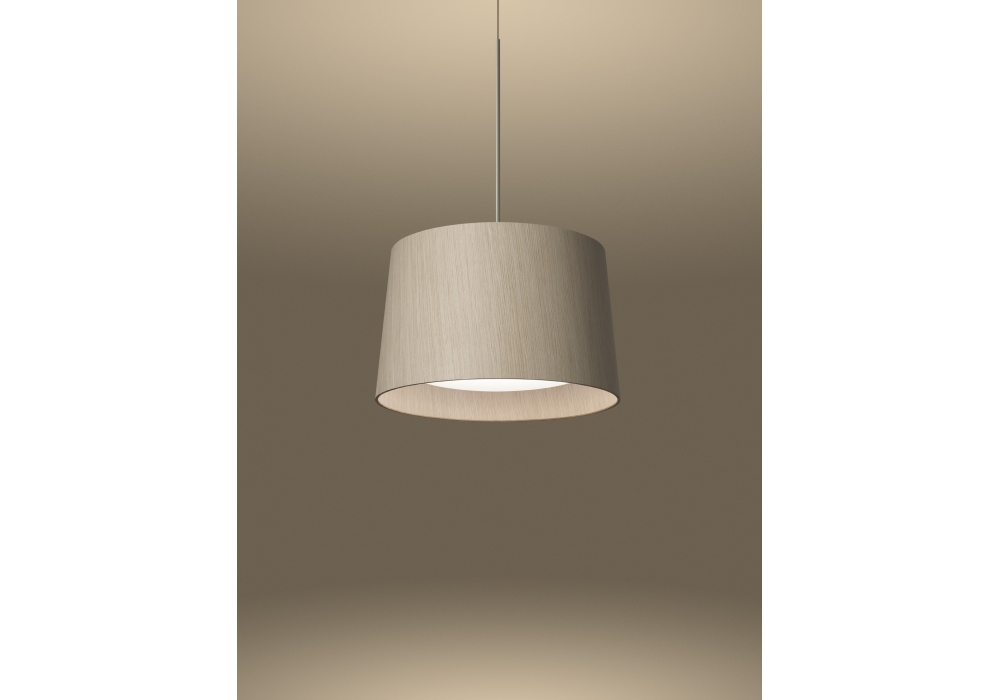 Twiggy Wood firmata da Marc Sadler per Foscarini è una lampada a sospensione di forma circolare con paralume in legno di rovere sbiancato e materiale composito su base di fibra di vetro. Il diffusore è strutturato da PMMA e policarbonato e scherma una sorgente luminosa di tipo LED in differenti versioni.
