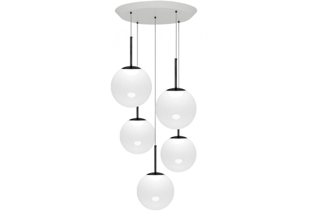Globe Mini firmato da Tom Dixon è un sistema a sospensione composto da 5 sfere in policarbonato, disponibile in diverse finiture.