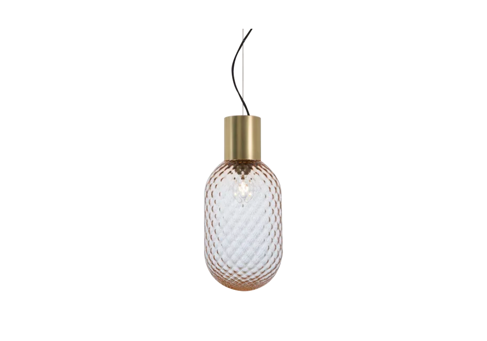 Bloom firmata da Matteo Zorzenoni per Il Fanale è una lampada a sospensione con rosone e porta lampada in ottone naturale. Il diffusore è in vetro con superficie tramata e scherma una sorgente luminosa di tipo LED. Bloom è disponibile in differenti modelli e finiture.