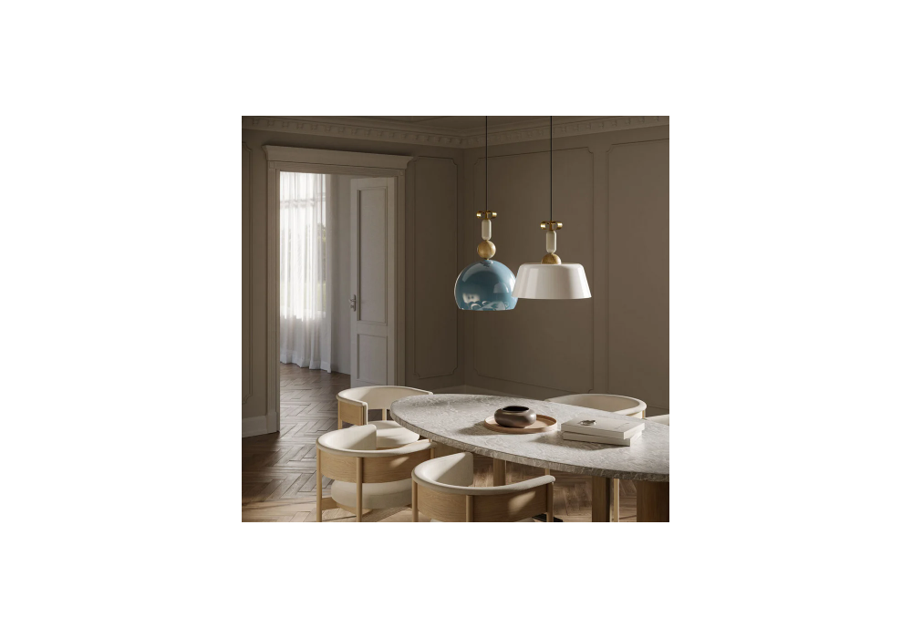 Bon Ton N3 firmata da Cristina Celestino per Il Fanale è una lampada a sospensione con struttura portante in ottone naturale e legno di rovere. Il diffusore è di forma tondeggiante con parte interne di colore bianco e scherma una sorgente luminosa di tipo LED dimmerabile. Bon Ton N3 è disponibile in differenti finiture.