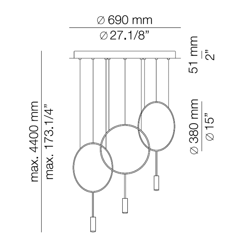 | Dimensioni | Ø 69 x H 440 cm; Ø 99 x H 440 cm. |