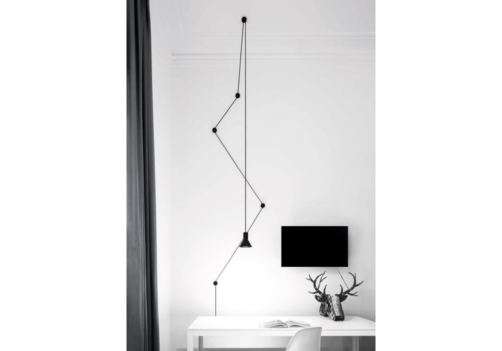 Neuro firmata e prodotta da Beppe Merlano e Davide Groppi è una lampada a sospensione strutturata interamente in metallo verniciato. La sorgente luminosa adottata è con innesto E27 di tipo LED alimentata da un cavo con spina. Neuro è disponibile in differenti finiture.