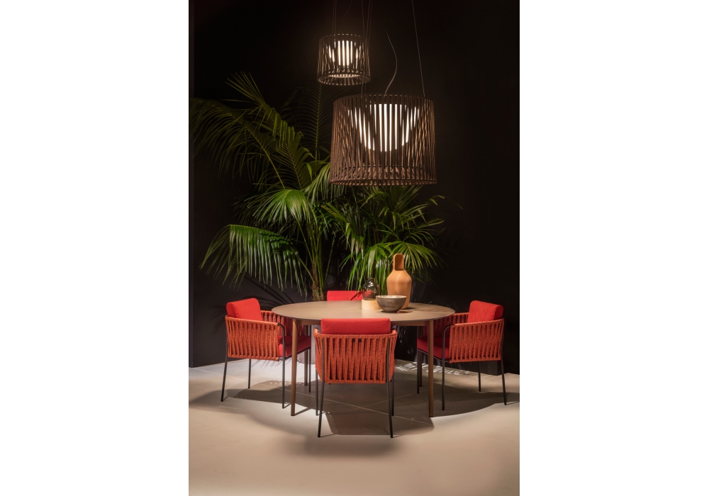 Oh Lamp firmata da Studio expormim per Expormim è una lampada a sospensione per esterno con struttura rifinita con vernice a polvere di poliestere e corda intrecciata ad alta resistenza. Sorgente luminosa a LED. Disponibile in differenti finiture e in due dimensioni.