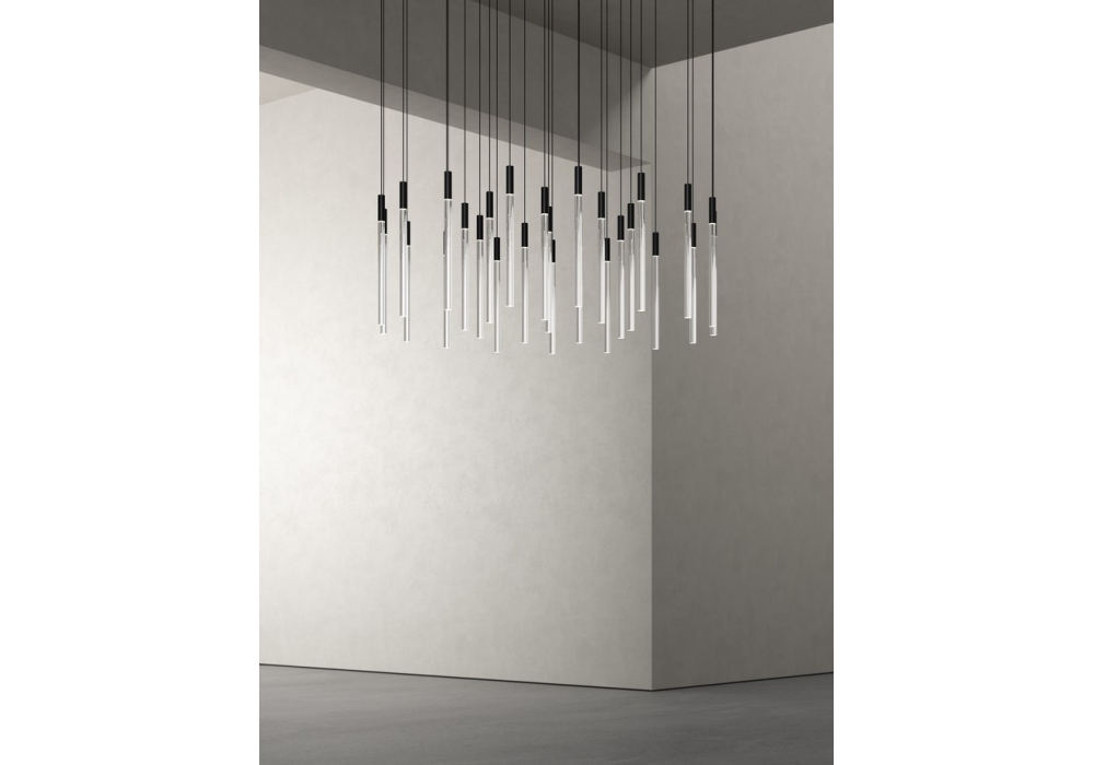 Plexi firmata da Angelo Mangiarotti per Karakter è una lampada a sospensione realizzata con corpo lampada e rosone in acciaio placcato spazzolato o acciaio verniciato a polvere nero e paralume in Plexiglas®. Disponibile in 2 dimensioni.
