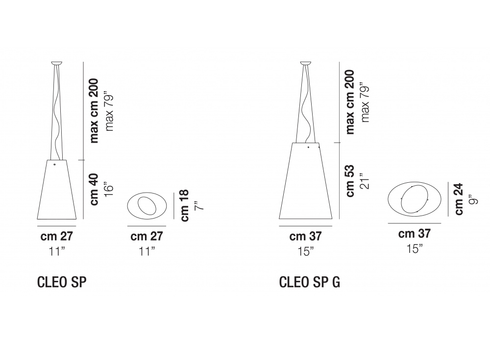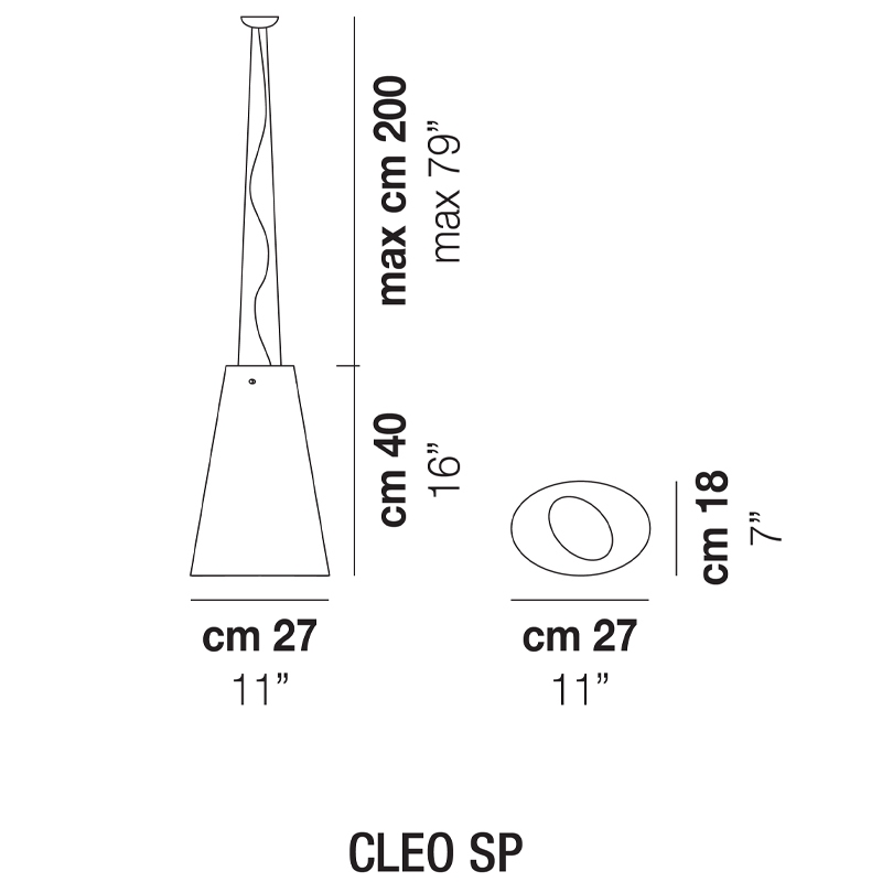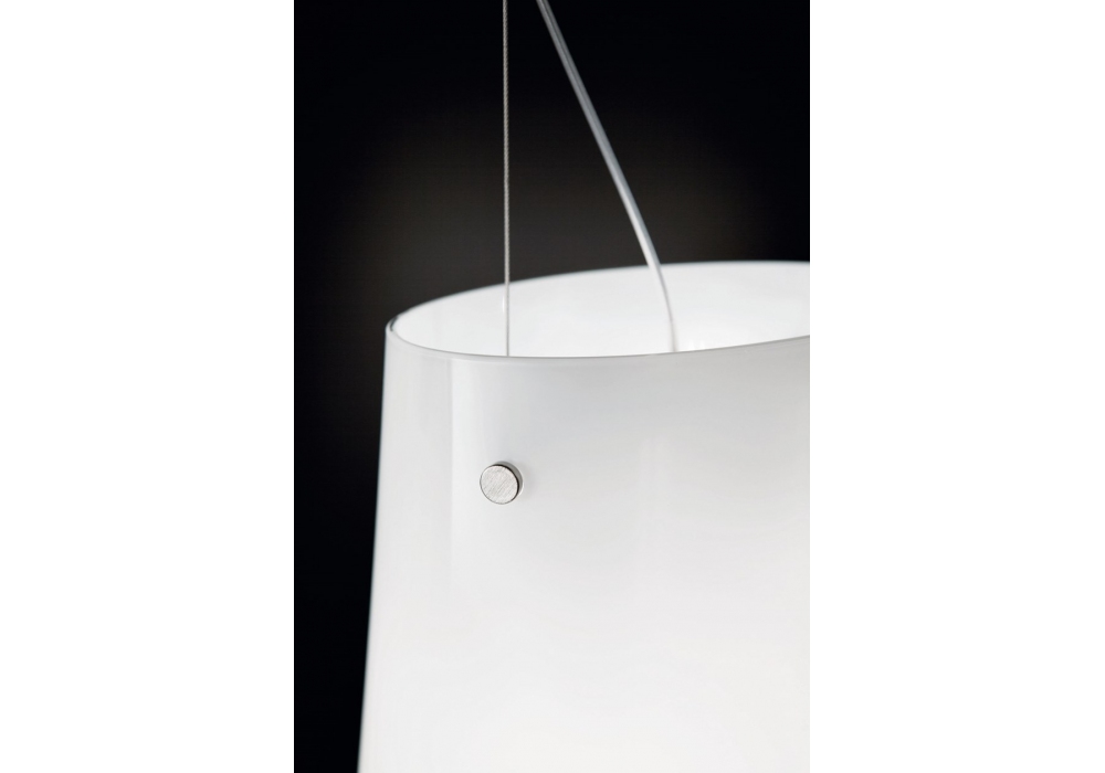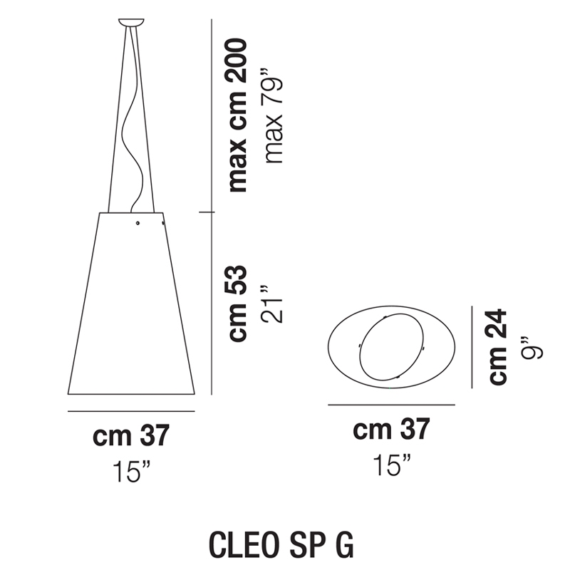 Cleo firmata da Barbara Maggiolo per Vistosi è una lampada a sospensione con struttura portante in metallo verniciato color nichel. Il diffusore è di forma conica in vetro bianco lucido e dispone di una sorgente luminosa con innesto E27 di tipo LED o alogena dimmerabile. Cleo è disponibile in differenti modelli.