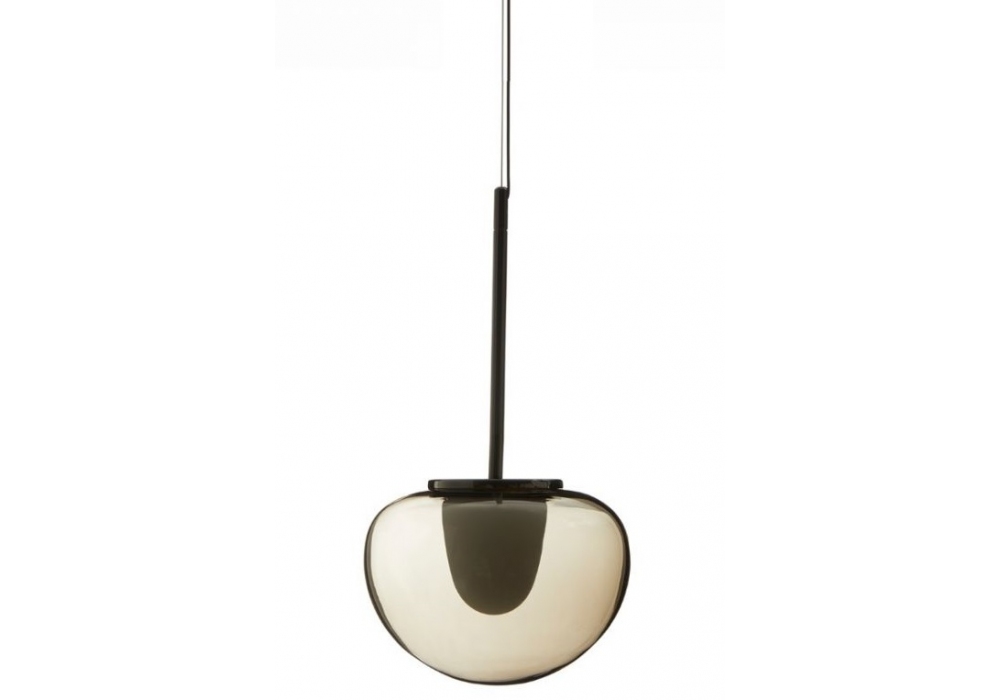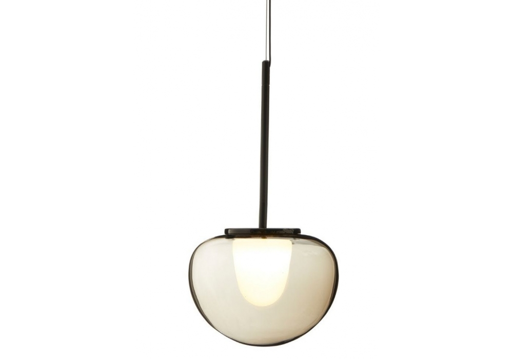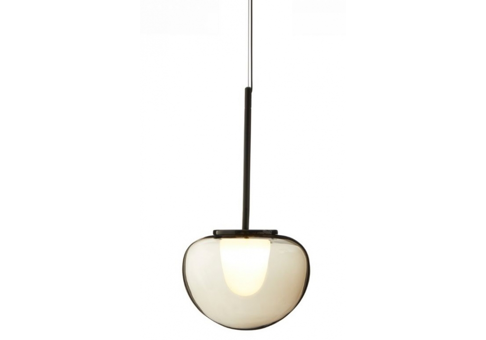 Thea firmata da Gabriele e Oscar Buratti per Fontana Arte è una lampada a sospensione a luce diffusa dimmerabile con montatura in metallo galvanizzato. Diffusore interno in vetro soffiato bianco opalino acidato, diffusore esterno diponibile in vetro trasparente o colorato. Il cavo di sospensione è realizzato in acciaio ed il rosone è in metallo vernciato bianco.