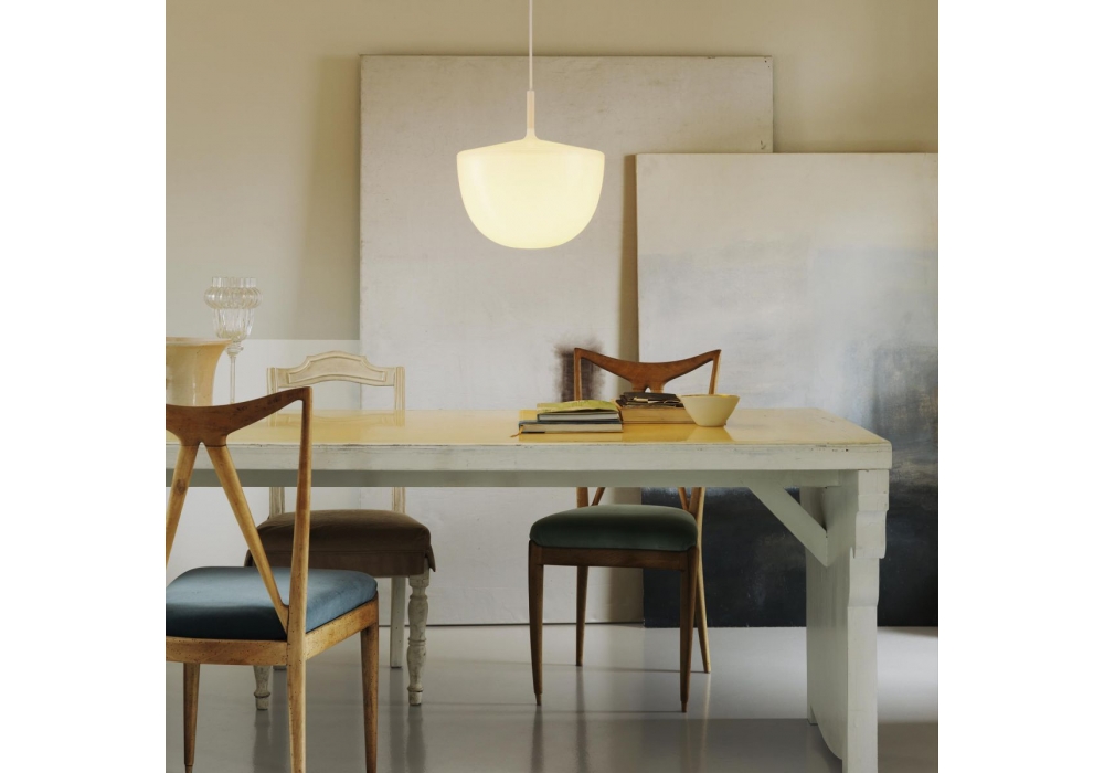 Cheshire firmata da Gamfratesi per Fontana Arte è una lampada a sospensione a luce indiretta dimmerabile. Struttura in metallo verniciato. Diffusore superiore in policarbonato verniciato e diffusore inferiore in policarbonato opalino. Cavo di alimentazione trasparente. Rosone in policarbonato verniciato. Disponibile in differenti finiture.