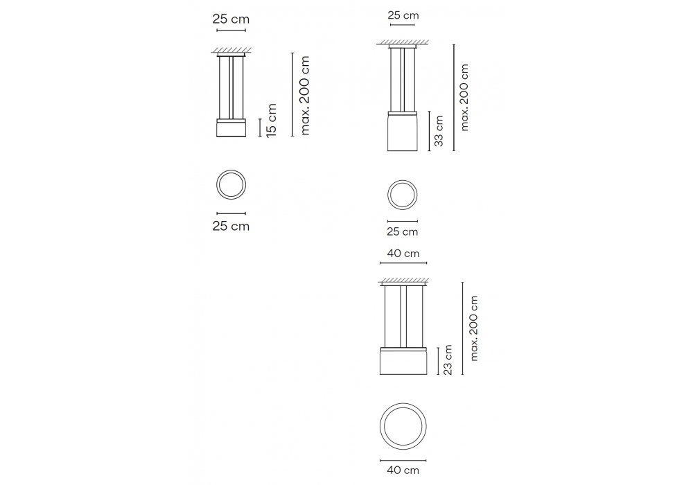 | Dimensioni | Ø 25 x H 15 cm; Ø 25 x H 33 cm; Ø 40 x H 23 cm. |