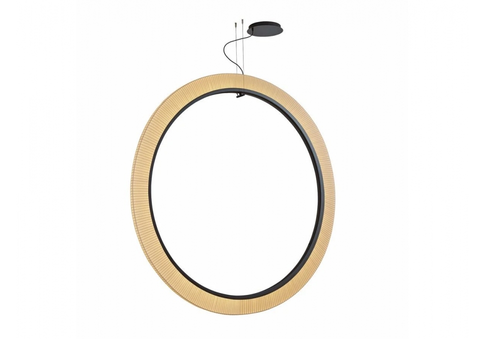 Roda Vertical firmata da Joana Bover per Bover è una lampada a sospensione di forma circolare con struttura portante in alluminio ed acciaio verniciato. Il diffusore è posto verticalmente ed è di forma tondeggiante in tessuto con sorgente luminosa di tipo LED dimmerabile. Roda Vertical è disponibile in differenti modelli e finiture.