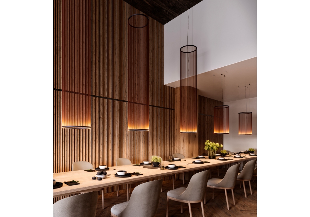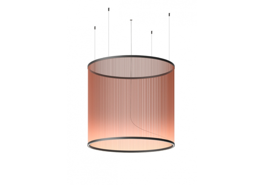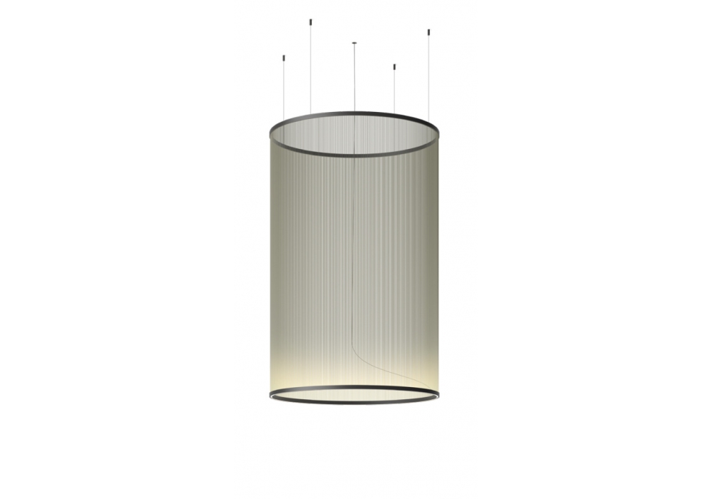 Array firmata da Umut Yamac per Vibia è una lampada a sospensione strutturata da una serie di fili sottili tesi tra due anelli in alluminio ed ottone. Il diffusore è in policarbonato e scherma una sorgente luminosa di tipo LED dimmerabile. Array è disponibile in differenti modelli, finiture, versioni di dimmerabilità e tipi di rosone.