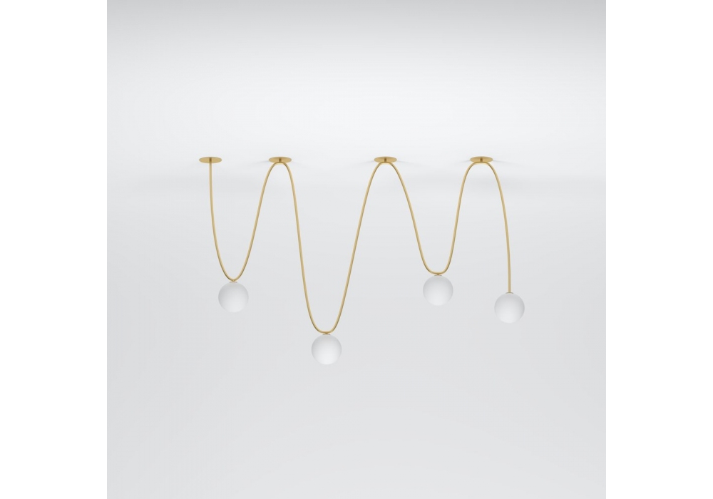 Motive firmato da Atelier Areti è un lampadario a sospensione realizzato in metallo verniciato o in ottone spazzolato e diffusore in vetro bianco. Disponibile in differenti versioni.