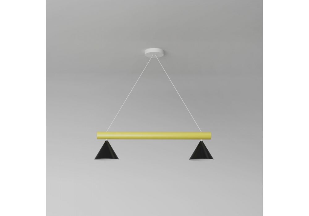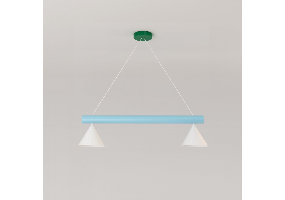 Tube With Globes and Cones firmata da Atelier Areti è una lampada a sospensione realizzata in metallo verniciato, disponibile in diverse finiture e modelli. Su richiesta, è inoltre possibile personalizzare i colori del cono, tubo e rosone.