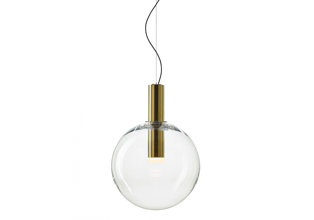 Phenomena Small Ball firmata da Dechem Studio per Bomma è una lampada a sospensione con paralume in cristallo soffiato a bocca e diffusore in metallo. È disponibile in diverse finiture.
