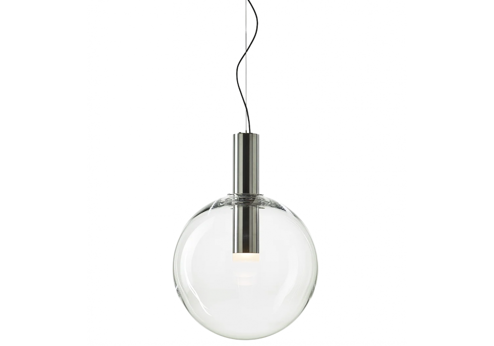 Phenomena Large Ball firmata da Dechem Studio per Bomma è una lampada a sospensione con paralume in cristallo soffiato a bocca e diffusore in metallo. È disponibile in diverse finiture.