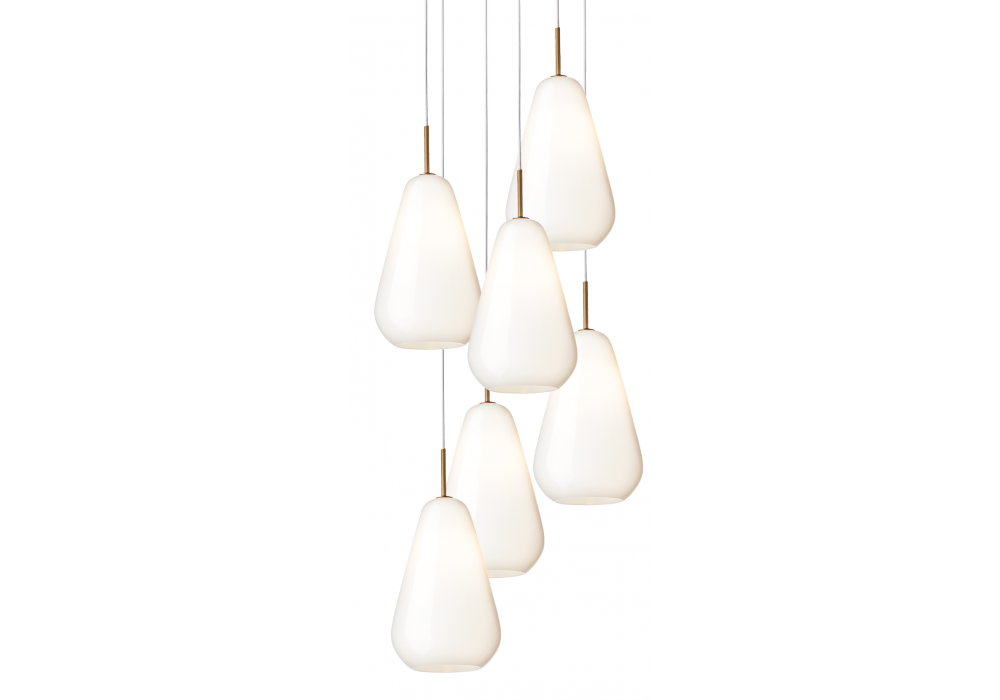 Anoli firmato da Sofie Refer per Nuura è una lampadario con diffusori in vetro soffiato opale o oro. La finitura del cavo varia a seconda dei diffusori scelti; nero per i diffusori oro e bianco per quelli opale.