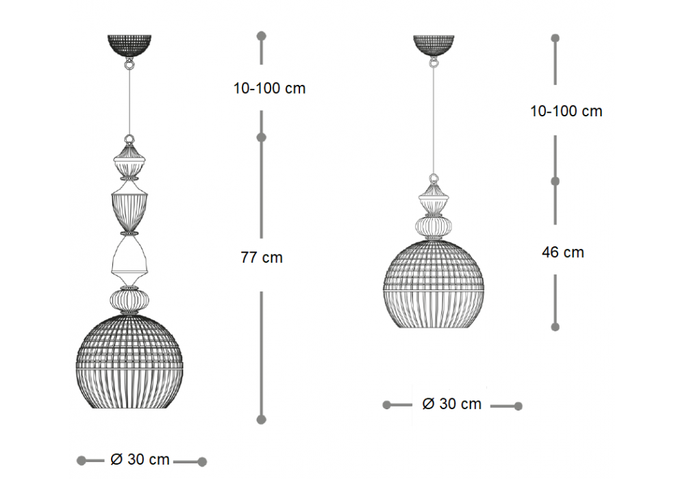 | Dimensioni | Ø 30 x H 46 cm + 10-100 cm; Ø 30 x H 77 + 10-100 cm. |